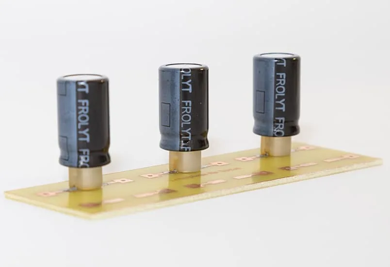 Durch diese Neuentwicklung entfällt das Handeinlöten des Kondensators und bewirkt eine Zeit- und Kostenersparnis beim Bestücken von Baugruppen.