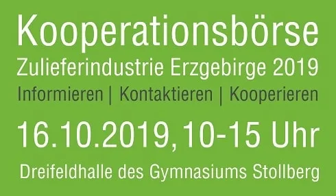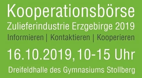 Wir freuen uns, Sie am 16. Oktober an unserem Stand auf der Kooperationsbörse der Zulieferindustrie im Erzgebirge 2019 in der Dreifeldhalle Carl-von-Bach-Gymnasium in Stollberg zu begrüßen.